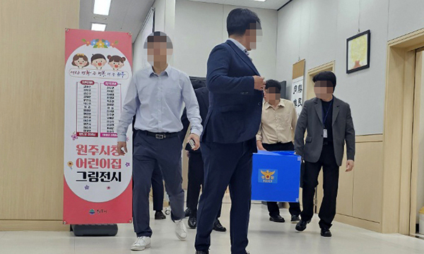 앞선 지난달 30일 원주경찰서는 총공사비 420억원이 투입되는 원주천 좌안 차집관로 개량공사 하도급 업체 선정 외압 의혹을 밝혀내기 위해 시장 비서실과 총무과, 전 비서실장의 자택 등 4곳에 대해 압수수색을 진행했다.