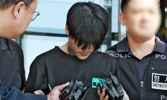 마스크나 모자 대신 자기 앞머리로 얼굴을 가린 그는 '피해자에게 하고 싶은 말 있느냐', '전 국민의 공분을 사고 있는데 할 말 없느냐'는 등의 기자 질의에 "죄송합니다"는 말만 두 차례 반복했다.