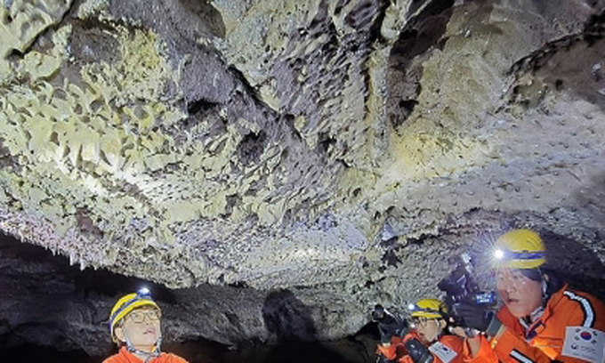 이 가루들이 용암동굴 위에 쌓이거나 입구를 통해 안으로 들어와 종유석과 석순 같은 석회 생성물이 생긴다고 설명했다.