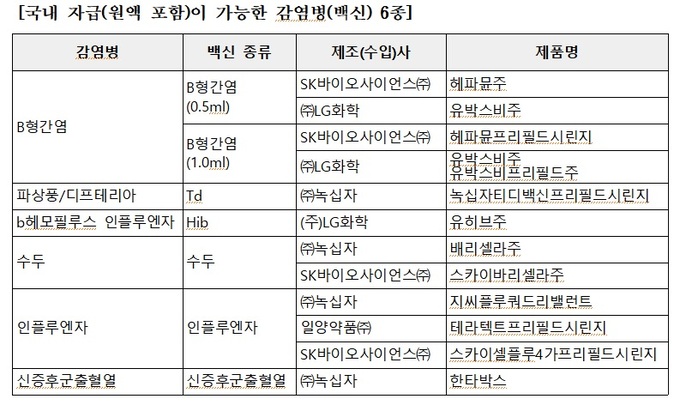 원액까지 생산하는 국내 제약회사는 4곳으로, 녹십자(4종), SK바이오사이언스(4종), LG화학(3종), 일양약품(1종)이었다. 나머지 15종의 국가예방접종백신은 국내 회사가 생산하더라도 원액은 해외에서 공급받고 있었다.