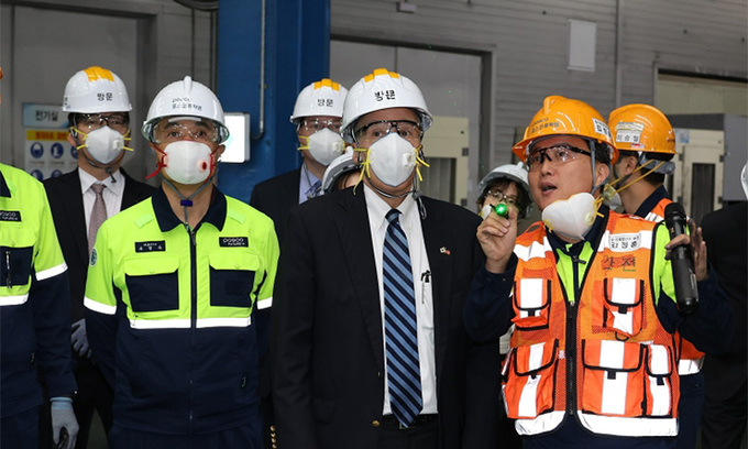 필립 골드버그 주한미국대사가 7일 포항에 위치한 포스코퓨처엠 인조흑연 음극재 공장과 포스텍을 잇따라 찾았다.