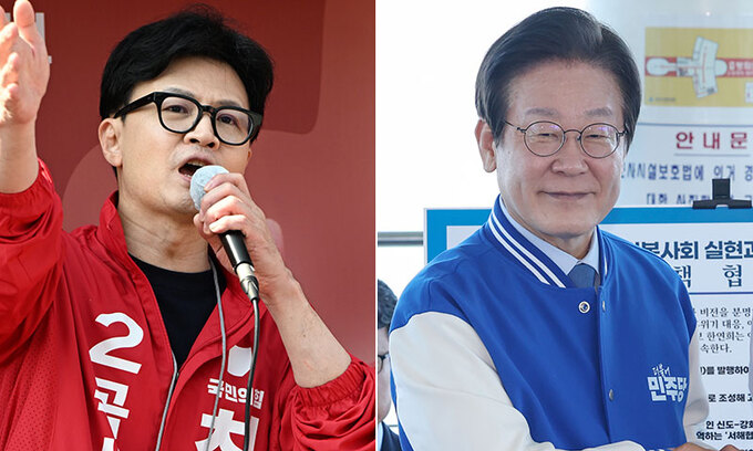 국민의힘 한동훈 대표(왼쪽), 더불어민주당 이재명 대표.