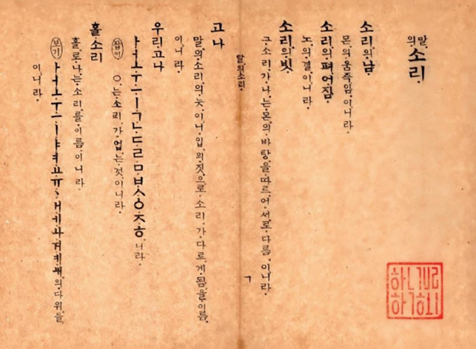 함께 복간한 ‘말의 소리’는 1914년 간행한 문법서다. 한글학회는 이 책을 “우리나라 국어학과 국어 문법, 한글 맞춤법 연구의 기틀을 잡은, 지금의 한글학회를 있게 한 주시경 선생의 대표 저서의 하나”로 꼽는다.