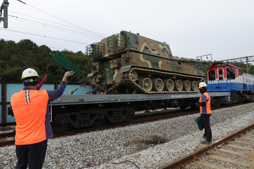 이동하는 K9자주포 입력 : 2024-10-14 17:59:00 수정 : 2024-10-14 17:58:59 구글 네이버 유튜브 2024 호국훈련을 앞두고 육군 8기동사단이 14일 경기 양주시에서 훈련에 참여할 K9자주포를 철도 수송을 통해 훈련 지역으로 이동시키고 있다. 합동참모본부 주관으로 실시되는 2024 호국훈련은 20일부터 25일까지 경기와 강원, 충북 지역 16개 시·군 일대 훈련장에서 진행된다. <연합>연합> Copyright ⓒ 세계일보. 무단 전재 및 재배포 금지 연합