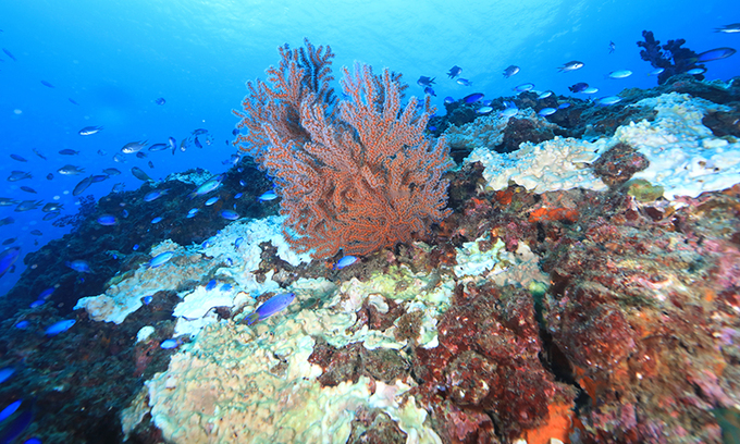 뜨거워진 제주 바다… 하얗게 죽은 산호 입력 : 2024-10-14 22:46:02 수정 : 2024-10-14 23:10:10 구글 네이버 유튜브 14일 제주 서귀포시 보목동 섶섬 10여m 수중에 열대성 경산호 군락이 죽어 하얗게 변해 있다. 지난 여름 전례 없는 고수온으로 인한 산호류와 말미잘 폐사 등 바닷속 이상 현상이 제주에서 이어지고 있다. <연합>연합> Copyright ⓒ 세계일보. 무단 전재 및 재배포 금지 연합