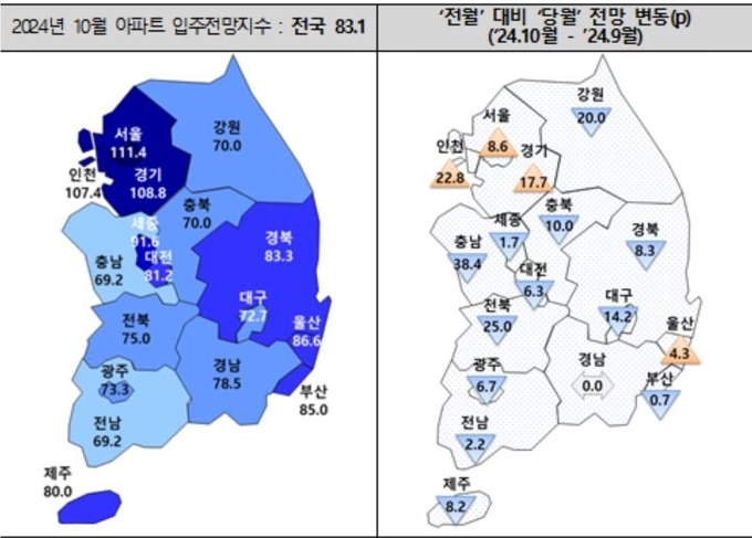 내달 전국 아파트 입주전망지수는 83.1로 전월보다 5.2포인트 하락할 것으로 조사됐다. 하지만 지역별 양극화가 뚜렷한 모습이다.