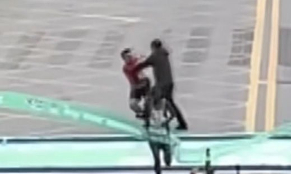 현장에 있던 모두가 깜짝 놀란 가운데, 관계자가 급히 달려가 남성을 제지했다. 다행히 1위 선수는 방해를 받지 않고 무사히 결승선을 통과했다.