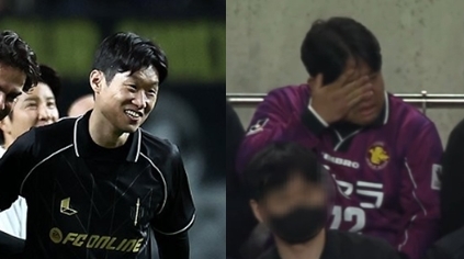 이때 감정이 북받쳐 눈물을 쏟아내는 한 남성의 얼굴이 전광판에 잡혔다. 소매로 연신 눈물을 닦는 그가 입고 있는 것은 일본 ‘교토 퍼플상가’의 유니폼. 박지성이 프로로 데뷔한 구단이다.