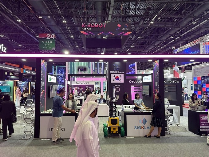 한국로봇산업진흥원은 지난 5월에 개최된 Automate 2024(북미 자동화 박람회)에 ‘Move the World with K-Robot’ 테마를 이어 받아 이번 GITEX 2024에서는 ‘K-Robotics for better tomorrow’을 테마로 한국 로봇관을 마련하고 국내의 서비스 및 자동화 솔루션 로봇기업 6개사의 제품을 전시했다.