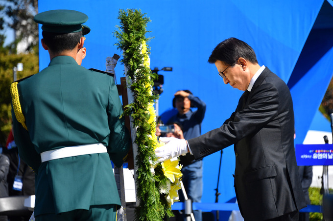 시는 매년 유엔의 날을 맞아 6·25전쟁에 참전해 전사한 전몰장병들을 추모하고, 유엔 정신을 기리는 기념식을 개최하고 있다. 올해 기념식에는 박형준 시장을 비롯한 하윤수 부산교육감, 서정인 재한유엔기념공원 관리처장, 곽영훈 유엔한국협회장 등 주요 기관장과 6·25전쟁 참전국 외교사절, 보훈단체, 육·해·공군 장병 및 유엔서포터즈 등 300여명이 참석했다.
