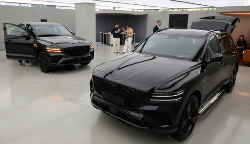 24일 서울 강남구 제네시스 강남 전시장에서 열린 제네시스 GV80(오른쪽) 및 GV80 쿠페 블랙 미디어 행사장에 차량이 전시돼 있다. GV80 블랙은 제네시스 G90 블랙에 이은 브랜드 두 번째 블랙 모델이다. 라디에이터 그릴과 범퍼 가니쉬, 전면 엠블럼처럼 두드러진 부품은 물론 헤드램프 내부 사이드 베젤 등 눈에 띄지 않는 부분까지 블랙 색상으로 마감했다.