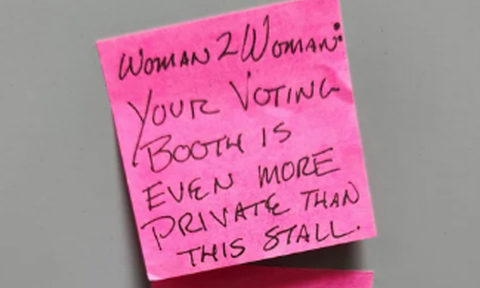 3일(현지시간) 워싱턴포스트(WP)에 따르면 해리스 부통령을 지원하는 풀뿌리 단체 ‘해리스·월즈를 지지하는 여성들’은 몇 달 전부터 이 같은 내용의 포스트잇을 붙이기 시작했다. 단체는 일부 기혼 여성이 자신이 지지하는 후보를 남편이 알아낼까 봐 걱정한다며 여성이 안심하고 투표할 수 있다는 사실을 알리기 위한 것이라고 취지를 설명했다.