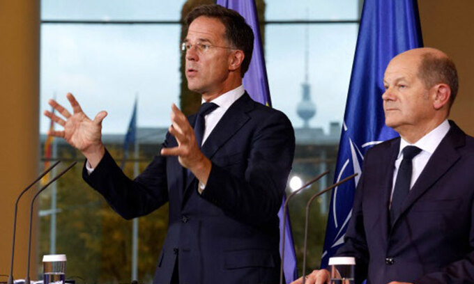 2022년 2월 러시아의 우크라이나 침공 후 안보 위기를 느낀 나토 회원국들은 앞다퉈 방위 예산을 증액했다. 그 결과 독일을 비롯한 상당수 국가가 GDP의 2%에 해당하는 금액을 국방비로 편성했다. 이날 뤼터는 독일을 지목해 ‘GDP 대비 2% 달성에 안주하지 말고 국방에 더 많은 비용을 지출해야 한다’라는 취지의 권고를 했다. 그는 기자회견 도중 “모든 나토 동맹국들은 (국방에) 더 많은 투자를 해야 한다”며 “독일이 계속해서 (방위 예산 증액에) 나설 것이라고 믿는다”고 말했다. 숄츠가 바로 옆에 서 있는 가운데 독일의 국방비 증액을 공개적으로 압박한 셈이다.