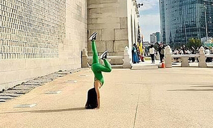 5일(현지시간) 현지 매체 VN익스프레스에 따르면 하노이에 사는 H씨는 지난달 29일 한국 방문 도중 경복궁 광화문 옆 돌담 앞에서 레깅스를 입고 고난도 요가 동작을 취하는 모습을 찍었다.