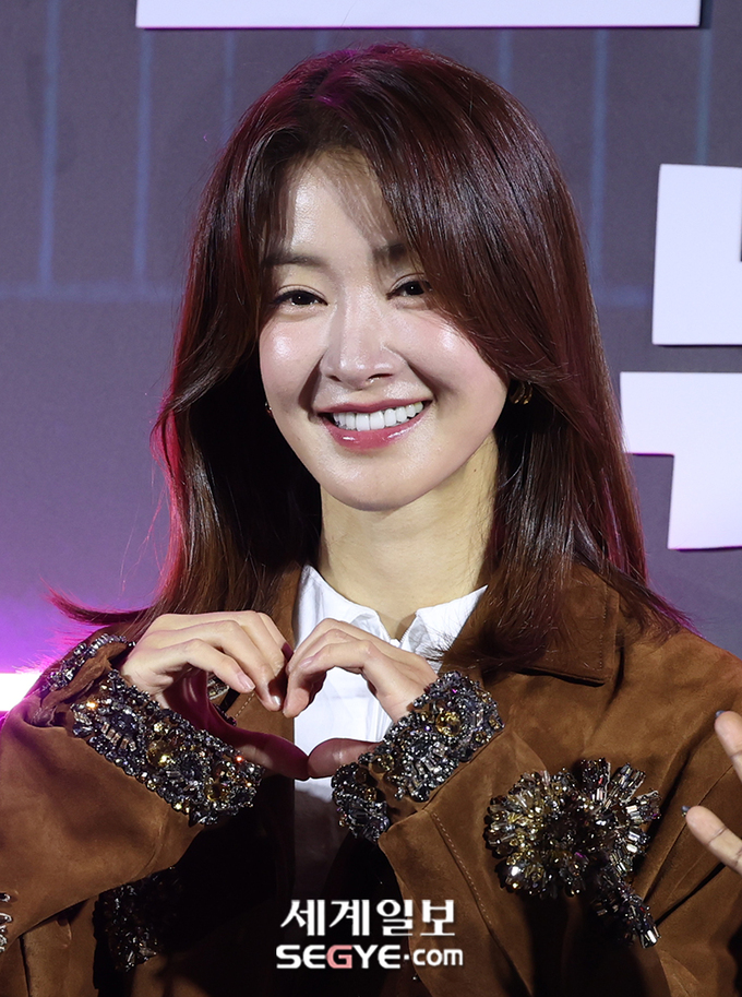 배우 이시영이 14일 오후 서울 용산 CGV에서 열린 넷플릭스(Netflix) 예능 ‘좀비버스: 뉴 블러드’의 제작발표회에 참석해 포즈를 취하고 있다.