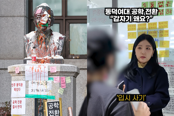 동덕여대 남녀공학 전환 논의를 두고 학교와 학생 간 갈등이 격화되는 모양새다. 학교 측은 점거 시위를 벌인 학생들을 대상으로 강경 대응 입장을 밝혔고, 학생들은 현 상황을 ‘입시 사기’에 빗대며 반발에 나섰다.