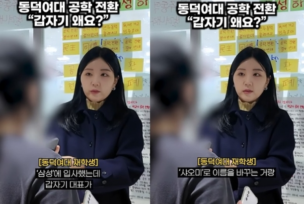 12일 유튜브 하이니티 채널에는 1분 가량의 동덕여대 재학생 인터뷰 영상이 올라왔다. 영상에 등장한 동덕여대 재학생 A씨는 동덕여대 공학 전환 논의가 충격적이라며 ‘입사 사기’에 비유했다.