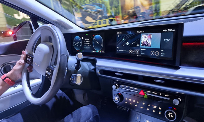 21일(현지시간) 미국 로스앤젤레스(LA) 컨벤션 센터에서 열린 ‘2024 LA 오토쇼’의 현대차 부스에 마련된 실내 트랙에서 전문 인스트럭터가 운전하는 아이오닉9의 동승석에 타봤다.