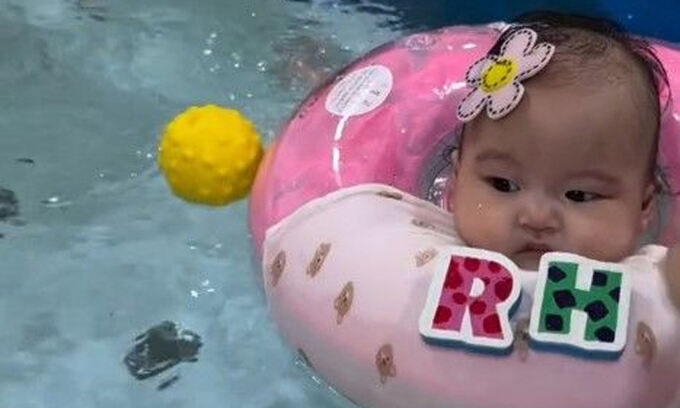 아야네는 3일 사회관계망서비스(SNS)에 "오늘의 기여미"라는 글과 함께 수영을 즐기는 루희의 모습을 올렸다.
