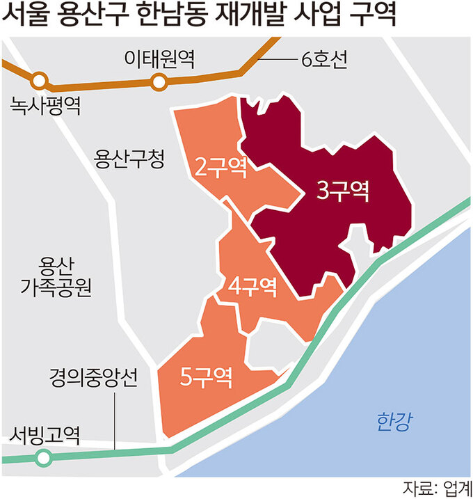 한남4구역 재개발 사업은 용산구 보광동 일대에 지하 7층~지상 22층, 51개 동, 2331가구와 부대시설을 짓는 프로젝트다. 총 1조5723억원 규모다. 시공사 선정은 2025년 1월18일 이뤄질 예정이다.