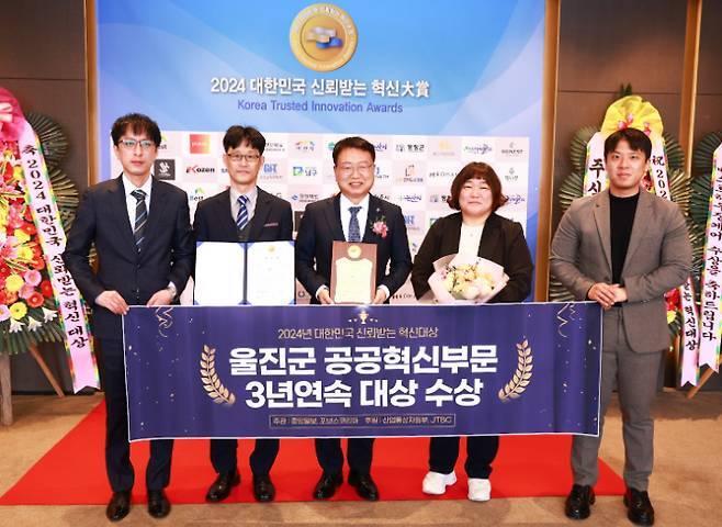 경북 울진군은 지난 2일 서울 더플라자호텔에서 열린 '2024년 대한민국 신뢰받는 혁신 대상' 시상식에서 3년 연속 행정혁신 대상을 수상했다고 5일 밝혔다.