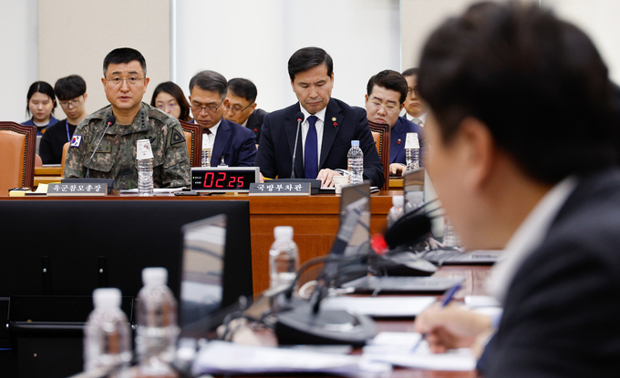 계엄사령관을 맡았던 박안수 육군참모총장이 5일 오후 서울 여의도 국회에서 열린 국방위원회 전체회의 비상계엄 선포 경과 및 병력동원 관련 현안질의에 출석, 의원 질의에 답하고 있다. 오른쪽은 김선호 국방부 차관. 뉴스1