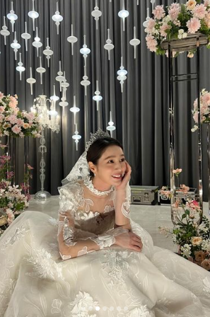사진 속 이민정은 웨딩드레스를 입고 청순한 매력을 뽐냈다.