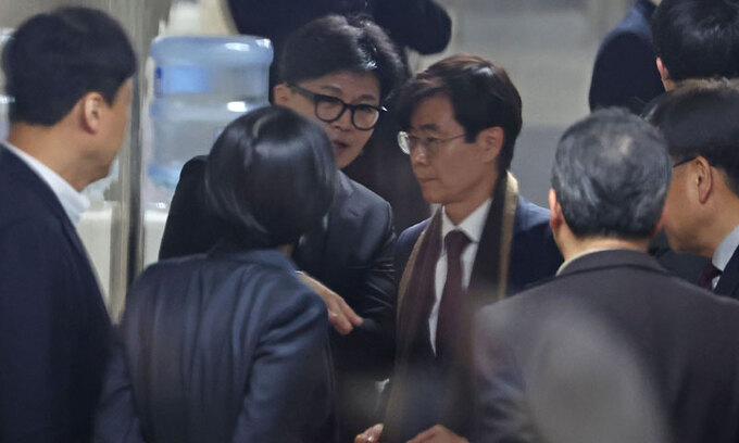 앞서 한 대표는 윤 대통령의 대국민 담화에 대해 “대통령의 정상적인 직무 수행은 불가능한 상황이고 대통령의 조기퇴진은 불가피하다”라면서도 탄핵 반대 입장을 명확히 하지 않았다. 그러면서 ‘임기 단축 개헌을 병행하느냐’는 질문에 “임기를 포함해 당에서 일임하는 것을 논의하겠단 말씀을 드렸고, 조기퇴진이 불가피하단 말씀을 드렸다”고 답했다.