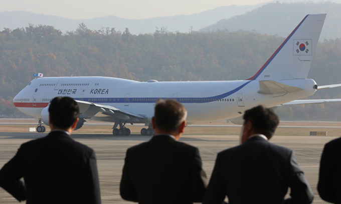 대통령 전용기인 공군 1호기가 10일 오전 경기 성남 소재 서울공항에서 이륙하면서 한때 소동이 벌어졌다. 논란이 커지자 대통령 경호처는 “정기적 성능점검 비행이었다”고 밝혔다.