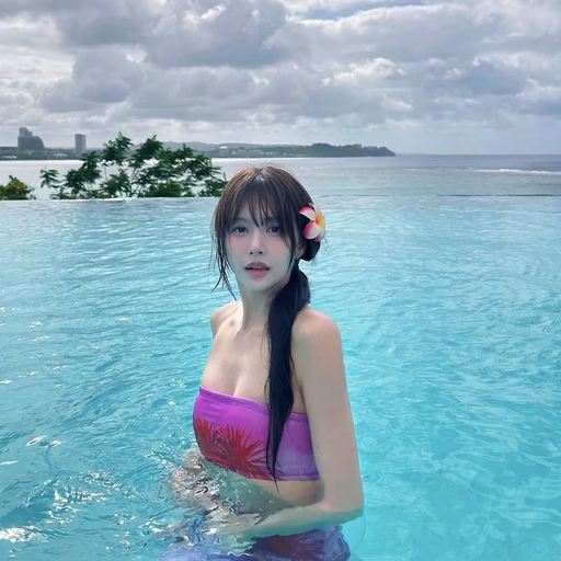 공개된 사진 속 한보름은 괌에서 휴가를 즐기며 보라색 비키니를 입고 해변에서 여유로운 시간을 보내는 모습이다.