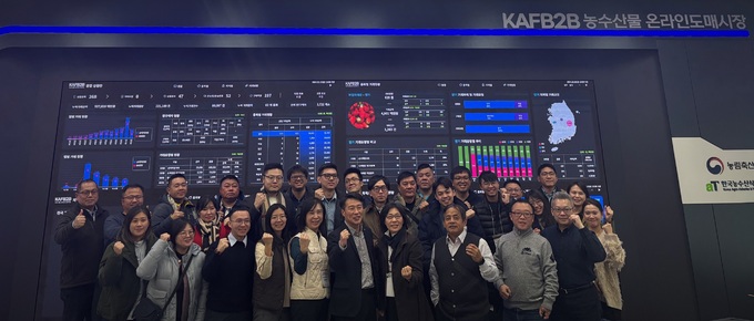 농림축산식품부(장관 송미령)와 한국농수산식품유통공사(aT, 사장 홍문표)에 따르면 대만 최대 도매시장인 ‘타이베이 농산물마케팅 유한공사’ 임직원과 중도매인, 생산자단체 등 32명이 13일 서울 aT센터의 ‘농수산물 온라인도매시장’ 상황실을 방문했다.