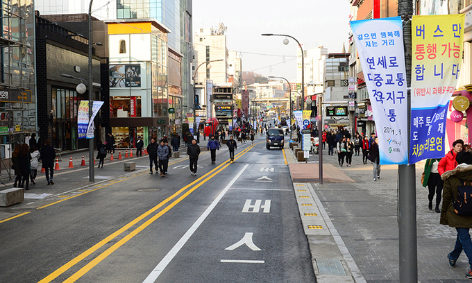 19일 서울시에 따르면 연세로 대중교통전용지구는 서울시 최초로 조성된 보행자·대중교통 전용공간이다. 2014년 1월 신촌로터리에서 연세대 삼거리까지 약 500m 구간에 만들어졌다. 보도폭 확대, 차로 축소, 광장 조성 등이 완료되면서 보행 환경 개선에 기여해왔다.