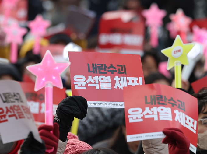 윤석열 대통령에 대한 국회 탄핵소추안 가결 이후 첫 주말인 21일 서울 도심에서 윤 대통령 퇴진과 조속한 체포를 촉구하는 대규모 집회가 열렸다.