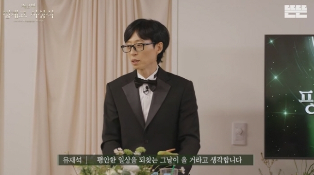 이날 많은 연예인 동료가 자리한 만큼 유재석은 프로그램과 연예계를 대표하는 마음으로 위로를 건넨 것으로 보인다. 끝으로 그는 “그럼에도 불구하고 함께 자리해 주셔서 감사하다”고 인사했다.