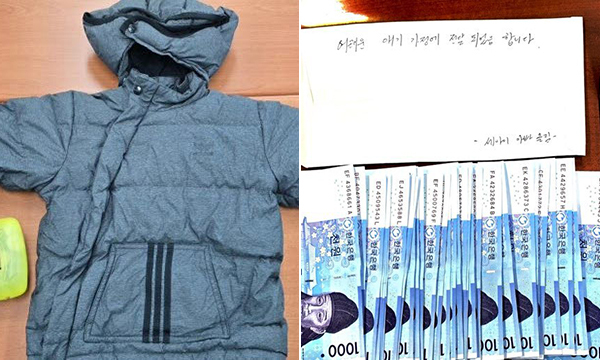 현장 근무 중이던 경찰관이 택배 상자를 발견해 확인해보니 상자 안에는 1000원짜리 지폐 30장(현금 3만원)과 저금통, 어린이용 패딩과 김장 김치, 손 편지 등이 담겨 있었다.