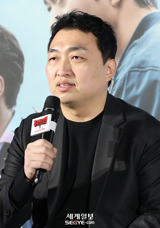 최원섭 감독이 27일 오전 서울 용산 CGV에서 열린 영화 ’히트맨2’의 제작보고회에 참석해 인사말을 하고 있다.