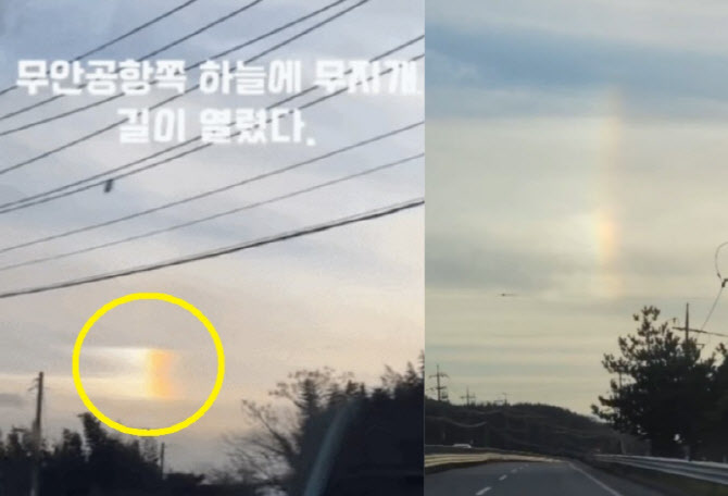 지난달 발생한 제주항공 참사로 179명이 목숨을 잃은 가운데, 참사가 발생한 무안국제공항 상공에 특이한 모양의 무지개가 떠 화제가 되고 있다.