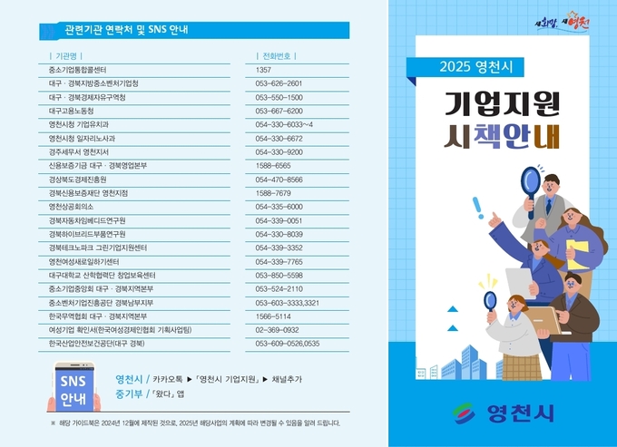 경북 영천시는 시와 기업지원 유관기관들의 2025년 기업 지원사업을 한 권에 담은 '2025 영천시 기업지원 시책안내' 가이드북을 발간했다고 3일 밝혔다.