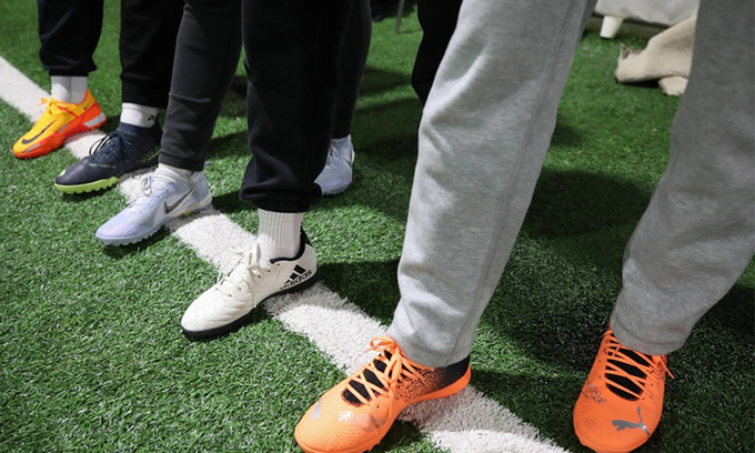 경기 고양시 일산서구 풋살장에서 여성 풋살클럽 회원이 풋살화를 보여주고 있다. 연합뉴스