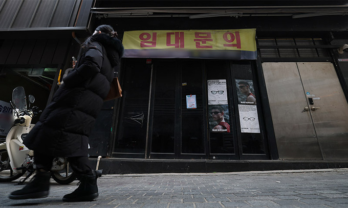 (서울=뉴스1) 박세연 기자 = 12일 서울시내의 한 상점에 임대문의 안내문이 걸려있다. 이날 통계청 국가통계포털(KOSIS)에 따르면 작년 1-11월 소매판매액 지수는 전년 같은 기간보다 2.1% 감소했다. 이는 신용카드 대란사태로 소비가 줄었던 2003년(-3.1%) 이후 같은 기간 기준으로 21년 만에 최대 폭 하락으로 이번 소비 절벽은 자동차·가전 등 내구재와 의복 등 준내구재, 음식료품 등 광범위한 상품군에서 나타나고 있다. 2025.1.12/뉴스1