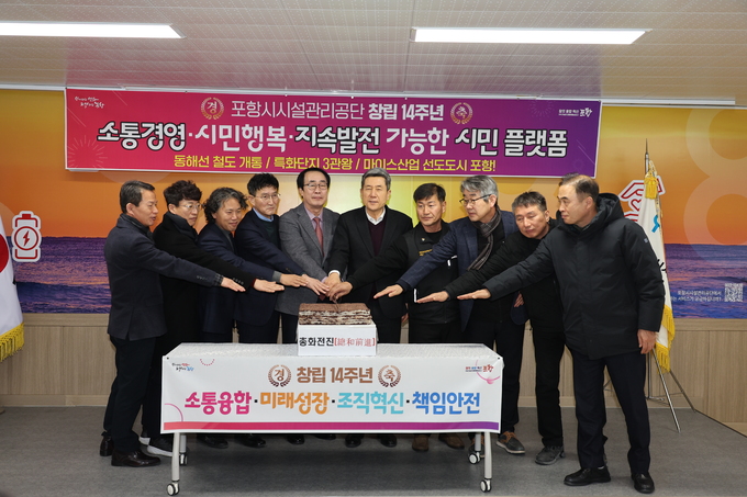 포항시시설관리공단은 지난 10일 종합운동장에서 임직원 100여명이 참석한 가운데 ‘창립 14주년 기념식’을 개최했다고 12일 밝혔다.