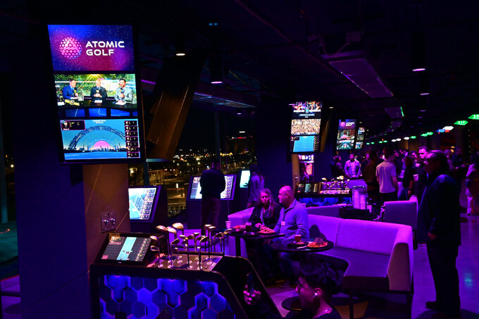 세계 최대 정보기술(IT)·가전 전시회가 열린 9일(현지시간) 라스베이거스에 지어진 초대형 복합문화공간 ‘아토믹 골프’에서 화려한 디스플레이와 콘텐츠가 나오고 있었다. 아토믹 골프는 실외 골프연습장에 스포츠 바(bar)와 펍(pub), VIP 라운지 등을 결합한 ‘스포테인먼트(스포츠+엔터테인먼트)’ 시설이다. 지상 4층 규모로 지어진 건물에 실외 골프연습장 면적만 축구장 4개 크기인 약 2만8000㎡에 달한다.