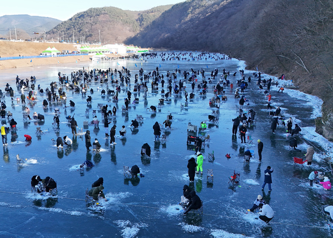 군은 매일 25㎝ 이상의 얼음 두께를 유지해 안전하게 축제를 진행하고 있다. 빙상장의 규모를 넓히고 다양한 먹을거리도 추가했다.