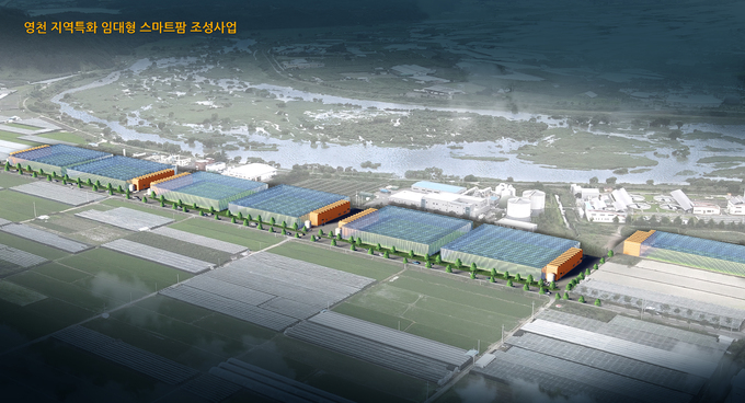 영천시 금호읍 구암리 706번지 일대에 4ha 규모로 조성된 영천시 지역특화 임대형 스마트팜은 스마트팜 유리온실 7개 동으로 구성된다.