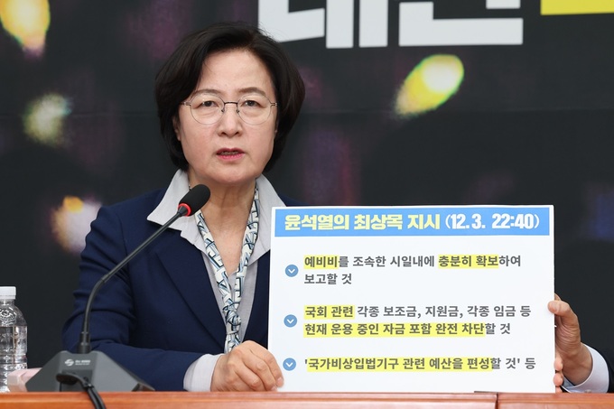 더불어민주당 추미애 의원은 “내란 수괴와 선동세력, 폭도에 대한 엄정한 처벌로 국가 공권력의 신뢰를 회복하지 않으면 안 된다”며 정점에 선 윤석열 대통령을 겨냥했다.
