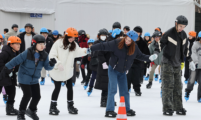 26일 서울 중구 서울광장 스케이트장을 찾은 시민들과 관광객들이 스케이팅을 즐기고 있다. 서울광장스케이트장은 일∼금요일에는 오전 10시부터 오후 9시30분까지, 토요일·공휴일에는 오전 10시부터 오후 11시까지 운영된다. 이용료는 1000원으로 예약은 서울시체육회 홈페이지에서 가능하며 매 회차당 300명 선착순 마감이다.