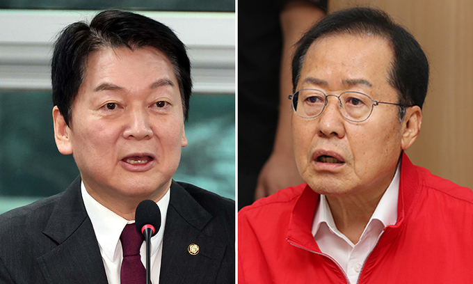 국민의힘 안철수 의원(왼쪽), 홍준표 대구시장. 뉴시스·뉴스1