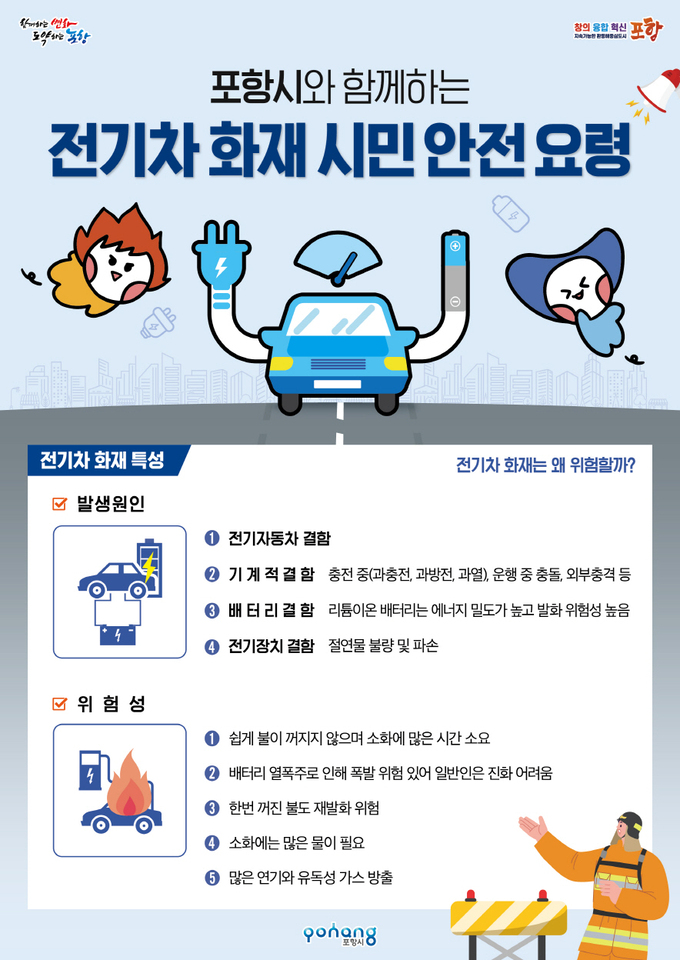 경북 포항시는 전기차 화재로부터 시민의 안전을 보호하기 위해 적극적인 홍보 및 지원을 추진한다고 9일 밝혔다.