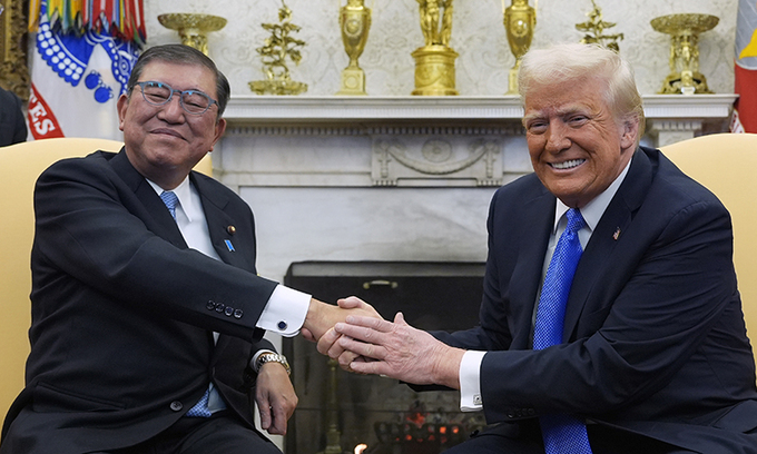 트럼프 대통령과 이시바 총리는 회담 후 공동성명에서 “자유롭고 열린 인도태평양을 견지함과 동시에 미·일 관계의 새로운 황금시대를 추구할 결의를 확인했다”는 문구를 담았다. ‘미·일의 새로운 황금시대’는 트럼프 대통령이 주창하는 ‘미국의 황금시대’란 표현을 빌려 양국 간 협력 의지를 강조한 것으로 해석된다.