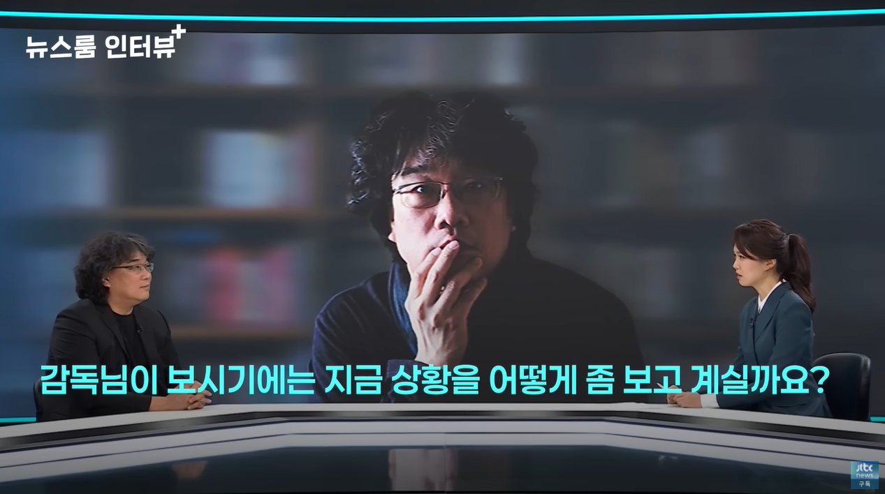 이날 봉 감독은 “뉴스를 보면 ‘현실이 영화보다 더하다’ 이런 이야기들을 하곤 하는데, 감독님은 지금 상황을 어떻게 보고 계실까요?”라는 앵커의 질문을 받고 “그 어떤 SF 영화보다도 초현실적인 일이 터졌다”고 답했다.